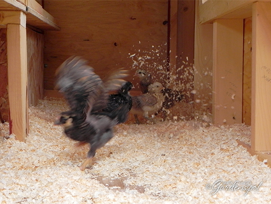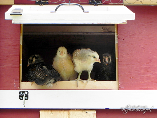 Sounds like they’ll definitely need that heat lamp tonight. But what a glorious time of year to be a chick exploring a new home! -Jean